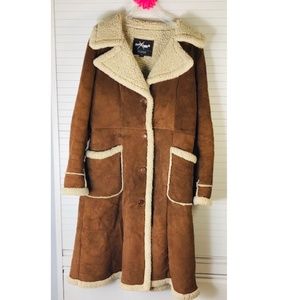Maxima Wilsons Shearling-Trim Suede Genuine Leather Long Coat