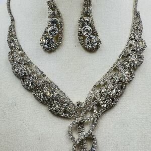 Maximalist Crystal Necklace And Earring Set Bridal Prom Homecoming Regencycore