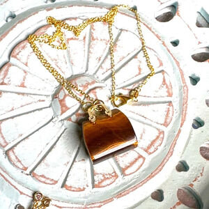 Maximalist Tiger’s eye purse pendant in vermeil gold/power prosperity necklace