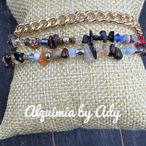 Maximalist multi stone rainbow wrap around adjustable chunky bracelet