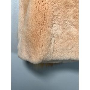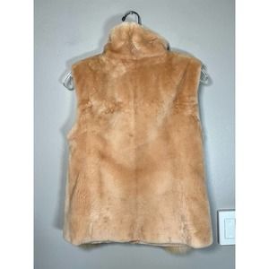 Striking fur vest from Maximilian in light tan with hook and eye closure, optional funnel neck, pockets. Unsure of fur type- pockets are fox most likely. The rest of the vest is super soft fur. No size indicated but most likely a size 4, see measurements. No flaws. Lined.