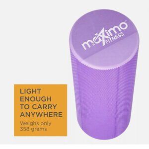 Maximo Fitness Foam Roller is a high-density exercise roller designed for back massage. It is 17" long and 5" high, made of purple foam with a massage grid feature. Suitable for home, semi-commercial, or commercial use, it can be used indoors or outdoors. The foam roller is designed for working out the back muscles during gym and training sessions.