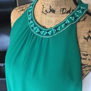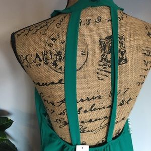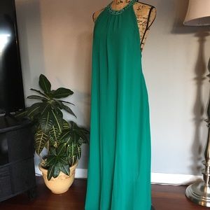 Smooth as silk flowing with neck collar and plunging back.