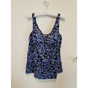 Maxine Of Hollywood Blue Floral One Piece SwimDress Bathing Swim Suit Size 30W