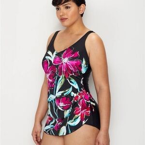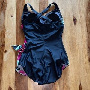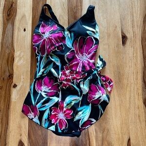 Maxine of Hollywood In Full Bloom sarong one piece swimsuit. Size 12. Very good pre owned condition