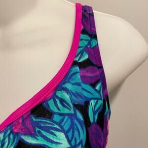 Maxine Of Hollywood One Piece Swimsuit Size 12 Vintage Pink & Purple Floral