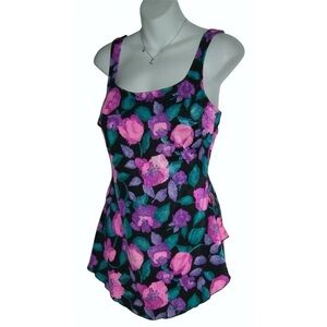 Maxine Of Hollywood Swimsuit Vintage 90s Floral One Piece Tankini Beach Swim 18