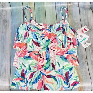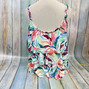 Maxine Of Hollywood Tankini Top Tropical Flutter Hem Swimsuit NEW Size 16 Swim