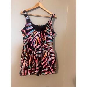 Maxine Of Hollywood Womens 22W One Piece Swimsuit Dress Black Pink Tropical Palm