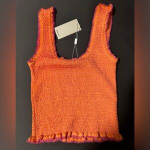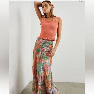 Made with a soft viscose jersey with contrast smocking and chain-link edging, the Maxine is a twist on your basic tank. Pair with the Agatha skirt or your favorite Rails denim.