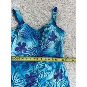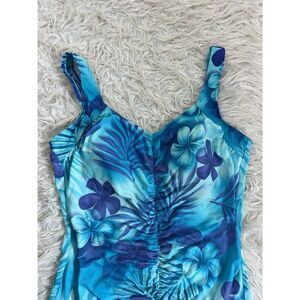 Maxine Womens Vintage Blue Tropical Floral Shirred Front One Piece Swimsuit 16
