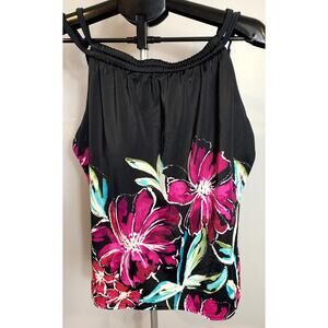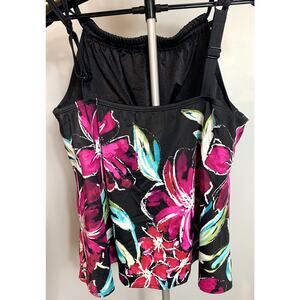 Pre-owned in good condition. Maxine of Hollywood 16 Halter Tankini top Black with Tropical Flowers
