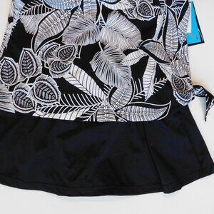 Maxine of Hollywood Azul Swim Dress Skirt Black White Tropical One-Piece NWT