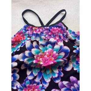 Maxine of Hollywood Floral Swim Top - Black, Blue, Pink