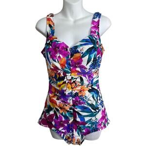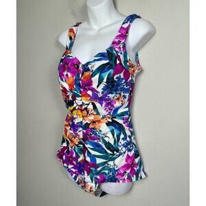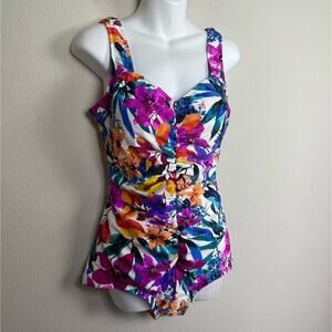 Maxine of Hollywood One Piece Swimsuit Size 14 Ruched Modest Retro Colorful