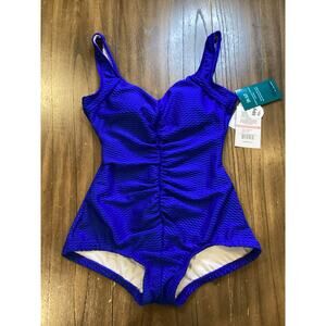 Maxine of Hollywood Shirred Front Girl Leg One Piece Swimsuit 10 cobalt blue nwt