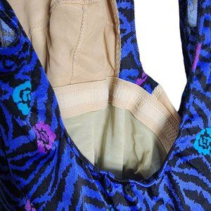 Vintage swimsuit dress/romper from Maxine of Hollywood. SUPER cute blue purple retro zebra print with flowers.