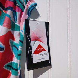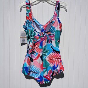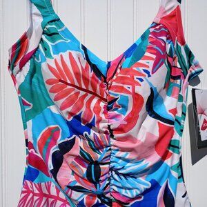 Maxine of Hollywood Swimsuit Womens 12 Tropical Abstraction Shirred Ruched NWT