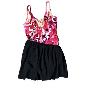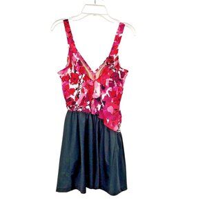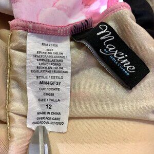 Maxine of Hollywood Swimsuit Womens 12 Used Pink Red Purple Floral Black MM4GF37