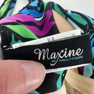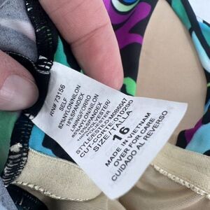 This swimsuit is a women's size 16 and includes stretchy fabric for a comfortable fit. The garment care instructions recommend hand washing only to ensure it stays in top condition. Get ready to soak up the sun in this stunning Maxine of Hollywood swimsuit.