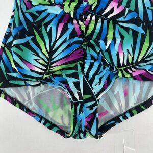 Maxine of Hollywood Tropical Swimsuit one piece size 16 XL Ruched Black Blue