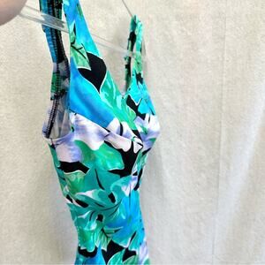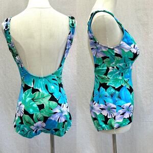 Maxine of Hollywood vintage 60s tropical flora one piece pin-up swimsuit size 12