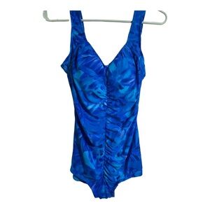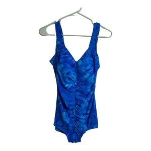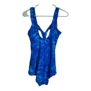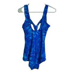 Maxine of Hollywood womens one piece swim suit. Blue floral high back size 14
