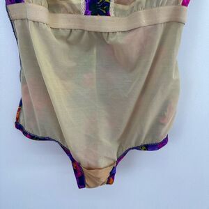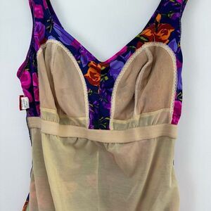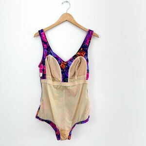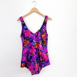 Maxine of Hollywood Vintage Women’s Plus Size Bright Multi Purple Pink Floral Ruched Midsection One Piece Swimsuit