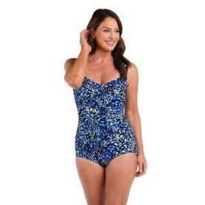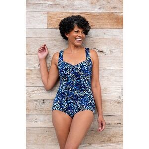 Maxine Of Hollywood Sz 14 Shirred One Piece Swimsuit Blue Speckle Print Shaping