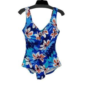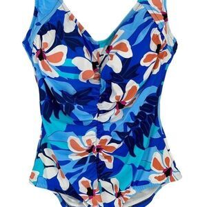 Maxine Of Hollywood Womens Floral Ruched Front One Piece Swimsuit Size 18W