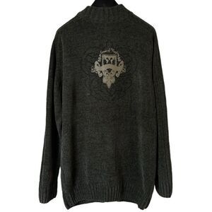 Maxini Men’s Vintage Olive Green Acrylic Chenille Full Zip Sweater Jacket Sz L