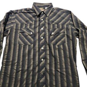 Maxini Men's Western Long Sleeve Snap Button Up Stripe Shirt Large
