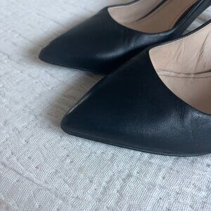 Used, but very good conditions. Two toned, genuine black leather with black patent heels Few marks on patent leather back and heel, please check pictures. size 38 1/2.