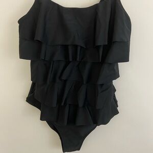 Maxmoda Black Tiered Ruffle One Piece Swimsuit Sz S Swimwear Vacation Beach