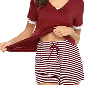 Maxmoda Womens Pajama Set Striped Short Sleeve Sleepwear