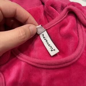 Maxomorra tank dungas size 80 (12 months). Hot pink super soft velour with cutie brown kitty cat appliqué on front with pockets. Buttons at shoulders. Can wear alone or layered with a shirt. Excellent condition.