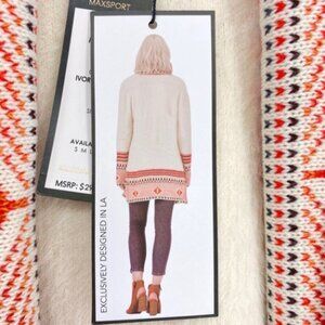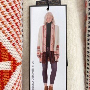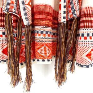 Women's Cardigan Sweater Open front from Maxsport. It has a beautiful Tribal Aztec boho print. Fringe details. Ivory with multicolor print.