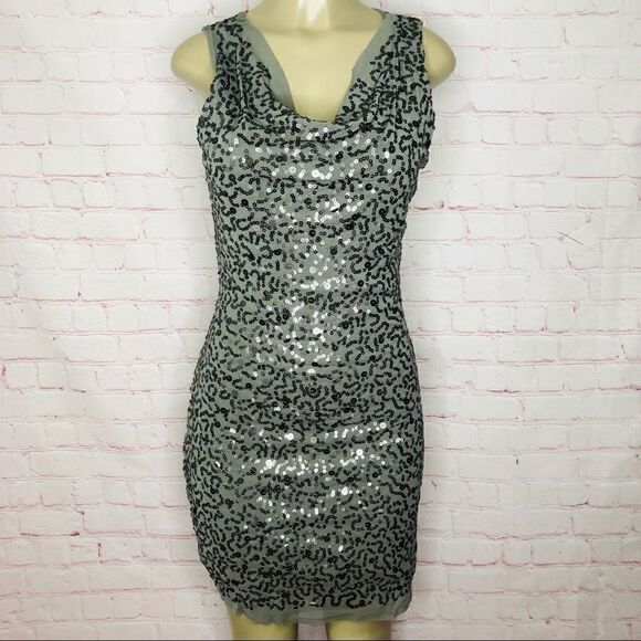 Grey sequin dresss scoop neckline . Fully lined sheath dress. Material stretchy . Good condition and smoke free home