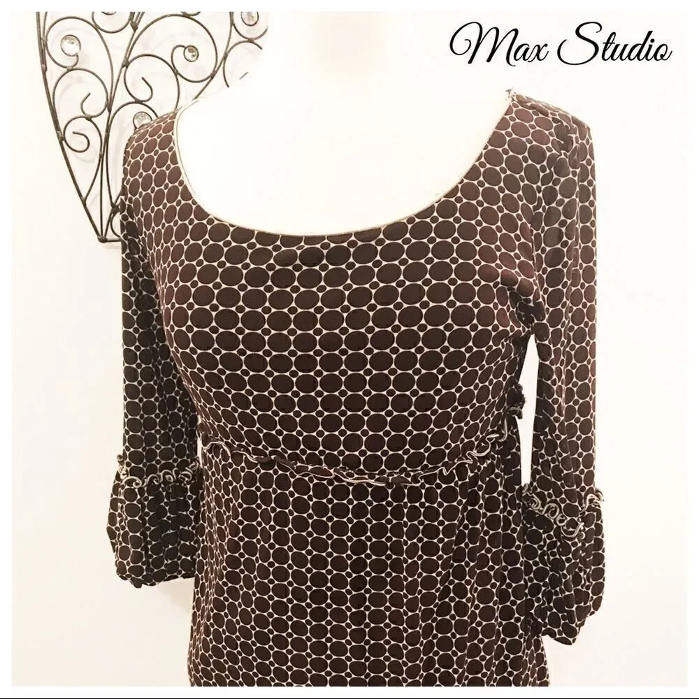 Cute semi sheet stretchy Max Studio Top * rounded neckline * half sleeves with bubbles hem and ruffle half way * ruffle just under bodice