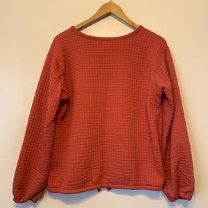 A drawstring hem accents this blouson sleeve sweater, perfect for adding something new to your wardrobe.