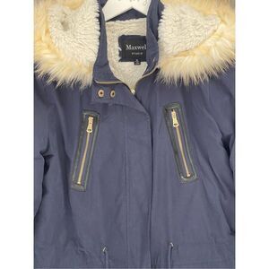 Maxwell Studio navy jacket with faux fur trim hood Size M