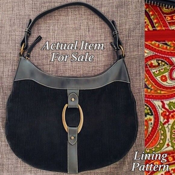 Maxx New York Black Corduroy And Leather Messenger Shoulder Bag Large Purse
