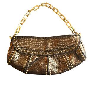 Maxx New York Bronze Textured Chain Handle Shoulder Bag Studded Detailing Purse
