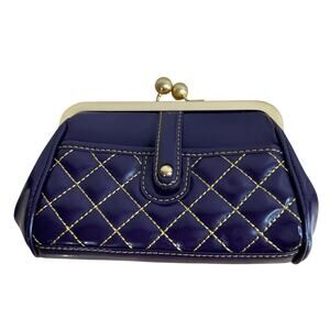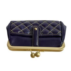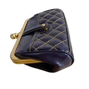 Maxx New York Signature Quilted Patent Leather Frame Clutch Bag Purple Gold