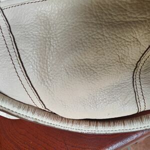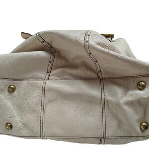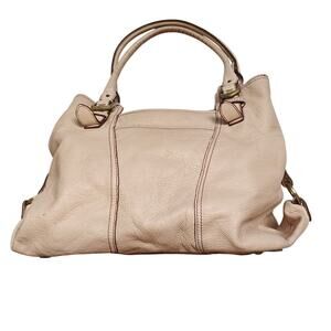 Maxx New York Leather Tote Bag Beige Pebbled Shoulder Satchel Brass Hardware