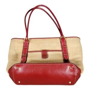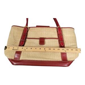 Maxx New York Raffia Woven Body LG Tote Handbag Shoulder Bag Leather Handle