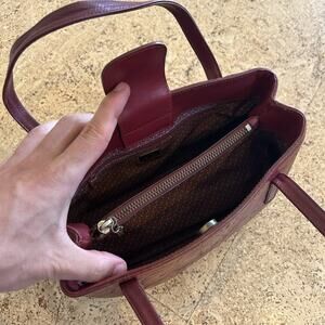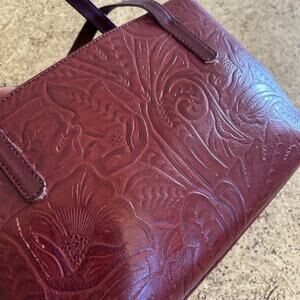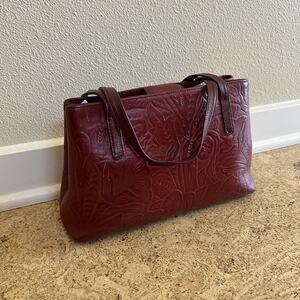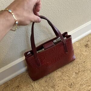 Maxx New York Red Carved Leather Floral Mini Purse Handbag