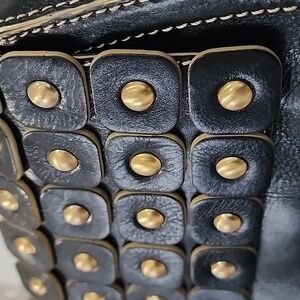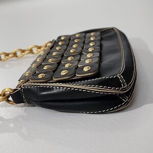 Very good condition studded leather shoulder bag with thick gold chain handle from Maxx New York