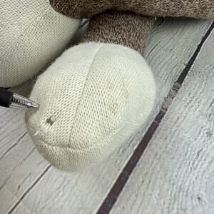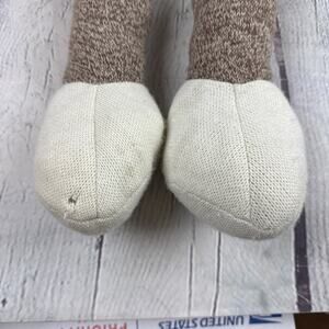 The Maxx The Sock Monkey Plush Jumbo Stuffed Animal Toy is a charming and whimsical addition to any child's collection. Standing at over 36 inches tall, this brown plush monkey is sure to provide hours of imaginative play for kids of all ages. With its retired status and Sock Monkey character family, this adorable stuffed animal brings a unique and fun element to playtime. Made in China, this 2012 release is perfect for children who love animals and stuffed animals. There are a few stains and some discoloration, but he has been cleaned. There is 1 small hole on his right foot. If requested, I will sew it with a needle and thread before I ship it.
