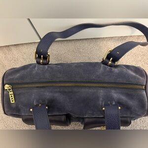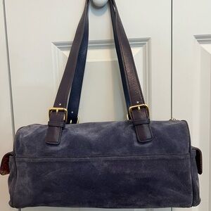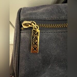 Maxx purple suede and leather with 5 outside pockets and zip top